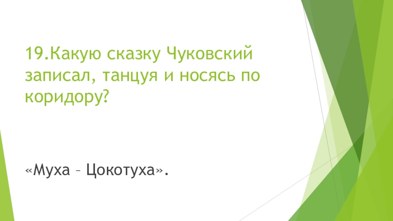Слайд 1919.Какую сказку Чуковский записал, танцуя и носясь по коридору?