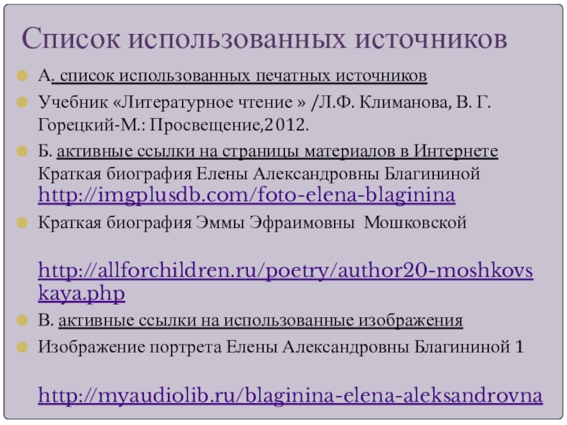 Учебник «Литературное чтение » /Л.Ф. Климанова, В. Г. Горецкий-М.: Просвещение,2012.