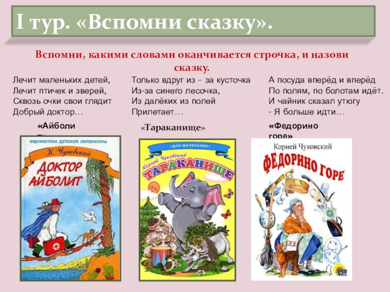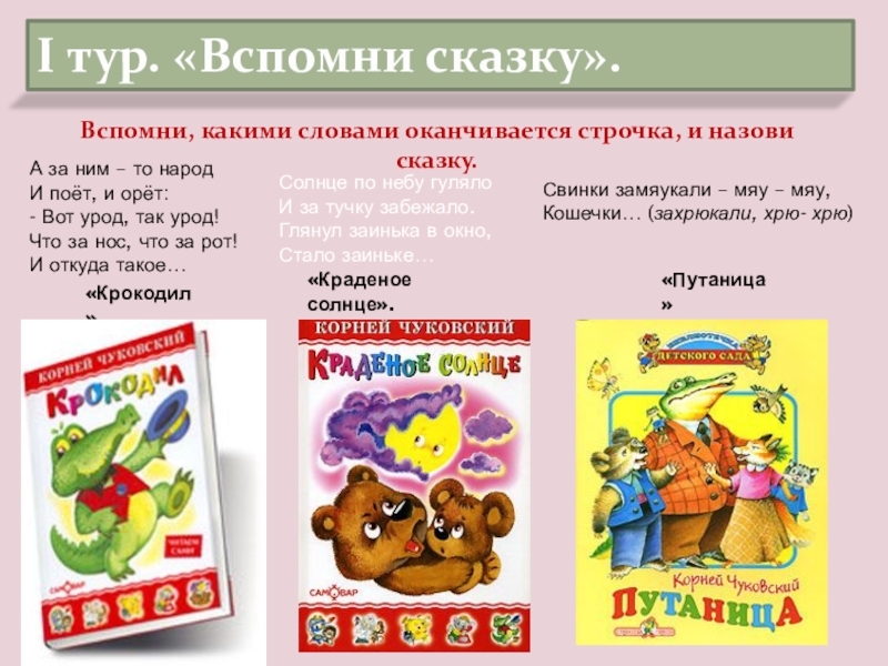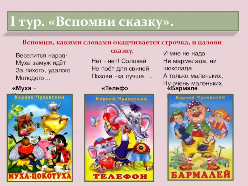 Вспомни, какими словами оканчивается строчка, и назови сказку.
