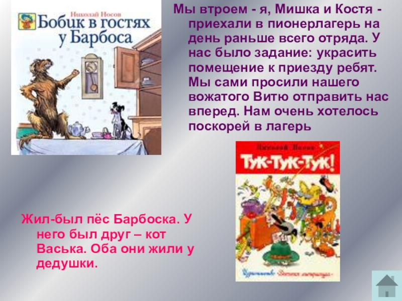 Николай Носов написал про Незнайку три книги: «Приключения Незнайки и его друзей», «Незнайка в Солнечном городе», «Незнайка на Луне».