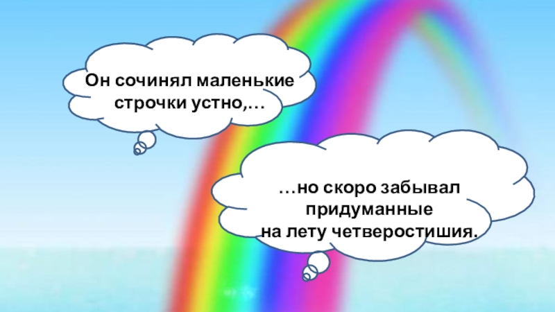 Он сочинял маленькие строчки устно,……но скоро забывал придуманные на лету четверостишия.