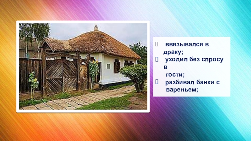 ввязывался в драку; уходил без спросу в   гости; разбивал банки с