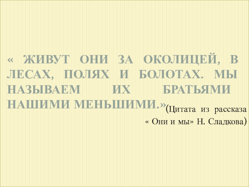 « Живут они за околицей, в лесах, полях и болотах. Мы называем их Братьями нашими меньшими.»