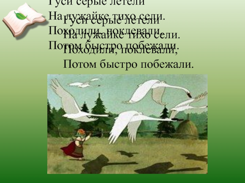 Слайд 9Гуси серые летели