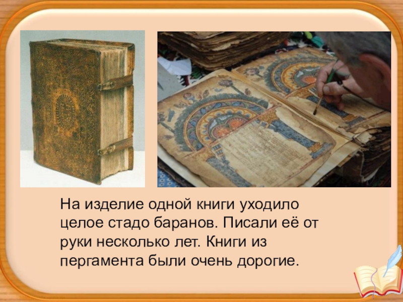 руки несколько лет. Книги из пергамента были очень дорогие.