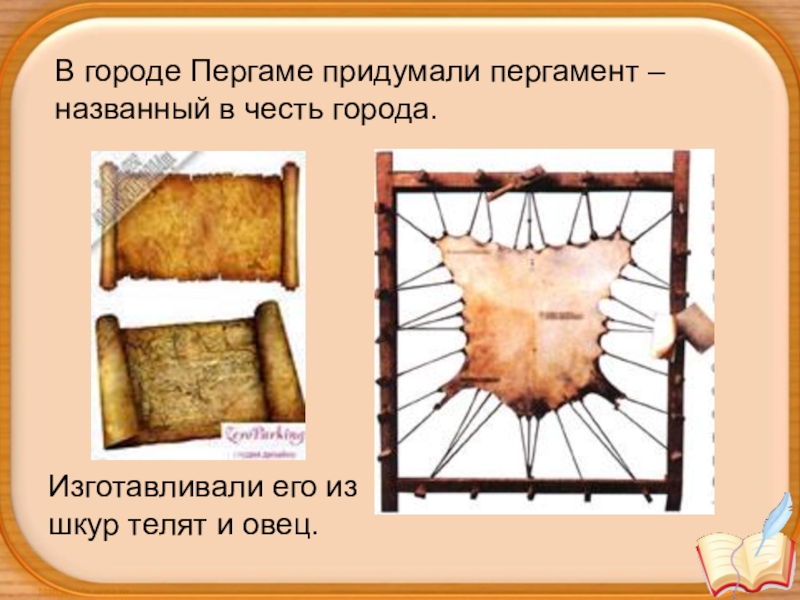 Слайд 13В городе Пергаме придумали пергамент – названный в честь города.