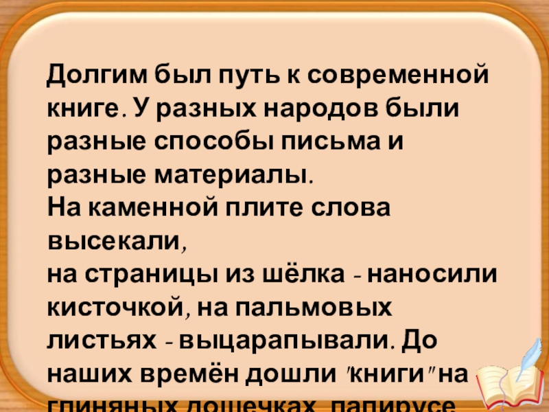 Слайд 2Долгим был путь к современной книге. У разных народов были разные