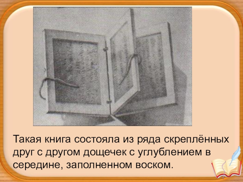 Слайд 7Такая книга состояла из ряда скреплённых друг с другом дощечек с