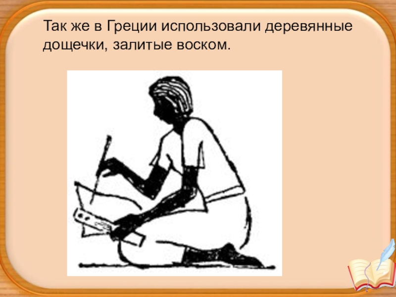 Слайд 6Так же в Греции использовали деревянные дощечки, залитые воском.