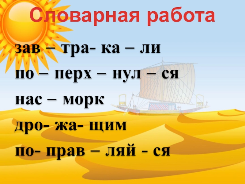 Словарная работазав – тра- ка – липо – перх – нул – сянас – моркдро- жа- щимпо-
