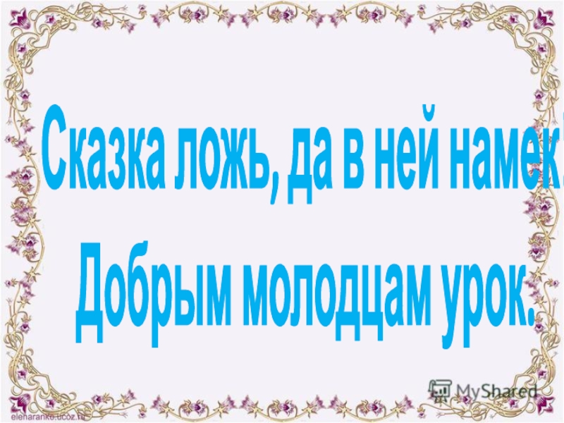 Слайд 2Сказка ложь, да в ней намек! Добрым молодцам урок.