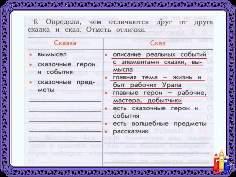 – Что вы ещё знаете об авторе? Чем сказы отличаются от сказок?