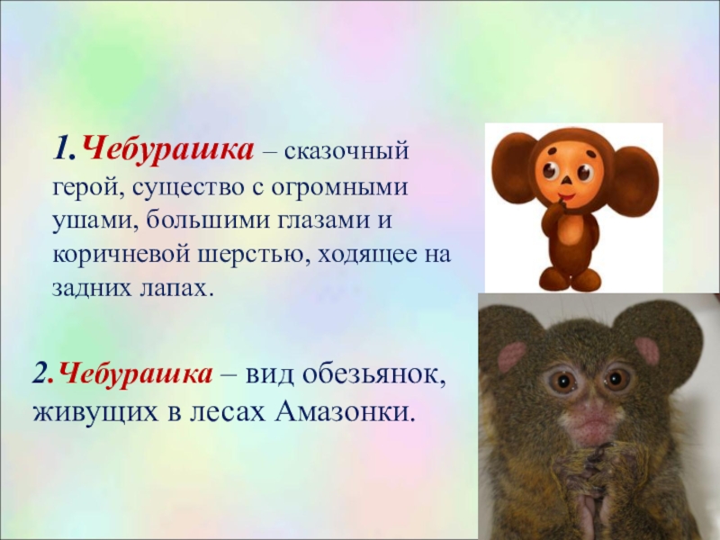 2.Чебурашка – вид обезьянок, живущих в лесах Амазонки.