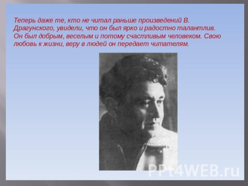 Слайд 1ВИКТОР ДРАГУНСКИЙ-ПИСАТЕЛЬ ПУБЛИЦИСТ.