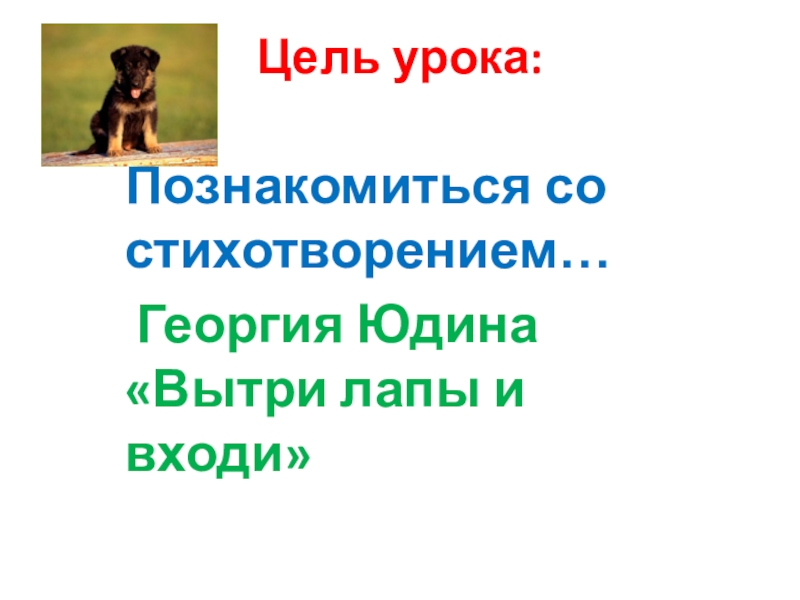 Цель урока:Познакомиться со стихотворением… Георгия Юдина «Вытри лапы и входи»