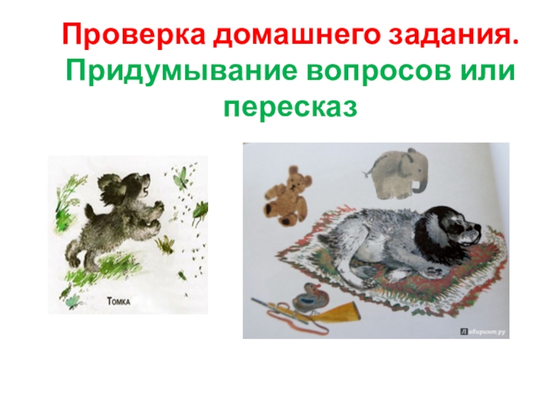 Слайд 5Проверка домашнего задания. Придумывание вопросов или пересказ
