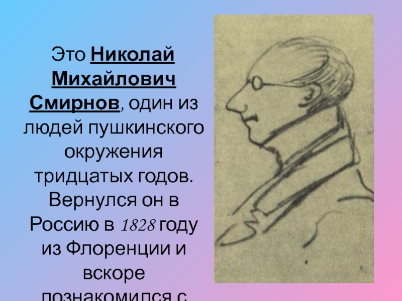 Слайд 14 Это Николай Михайлович Смирнов, один из людей пушкинского окружения
