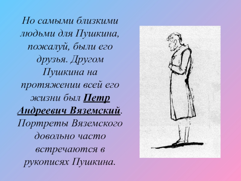 Пушкина на протяжении всей его жизни был Петр Андреевич Вяземский. Портреты Вяземского довольно часто встречаются в рукописях Пушкина.