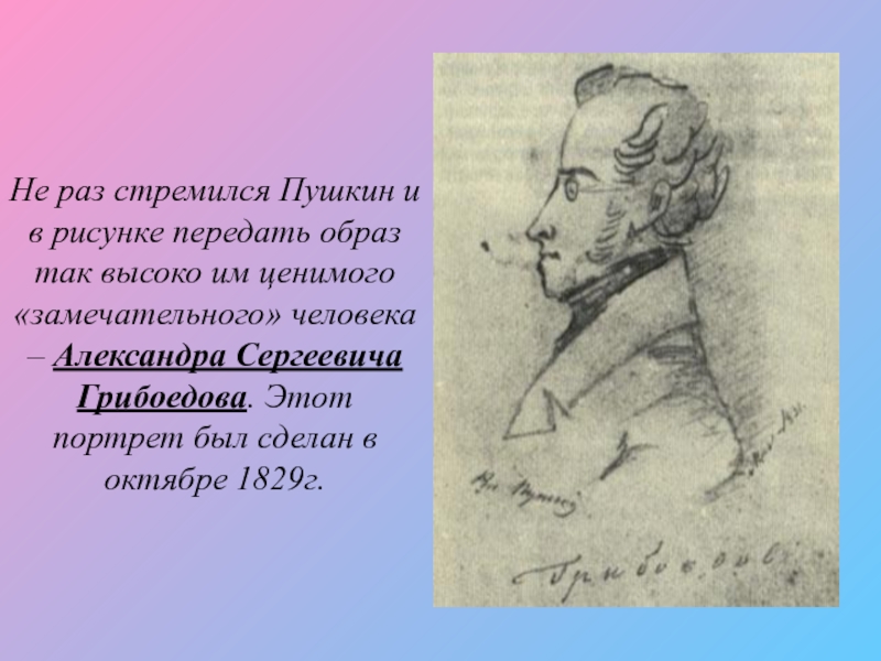 им ценимого «замечательного» человека – Александра Сергеевича Грибоедова. Этот портрет был сделан в октябре 1829г.