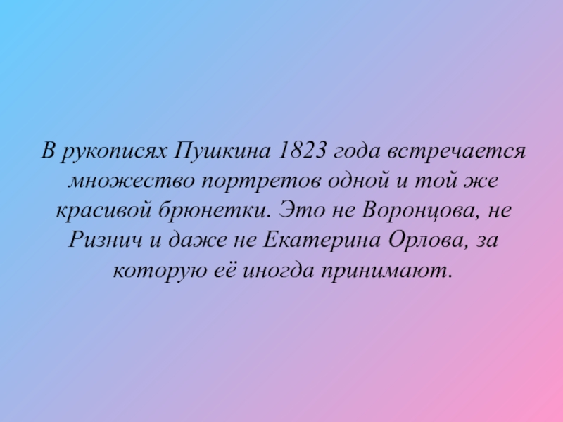 Слайд 23В рукописях Пушкина 1823 года встречается множество портретов одной и той