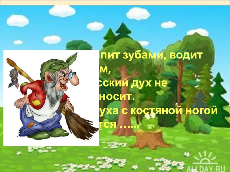 Скрипит зубами, водит носом, И русский дух не переносит. Старуха с костяной ногой зовется …...