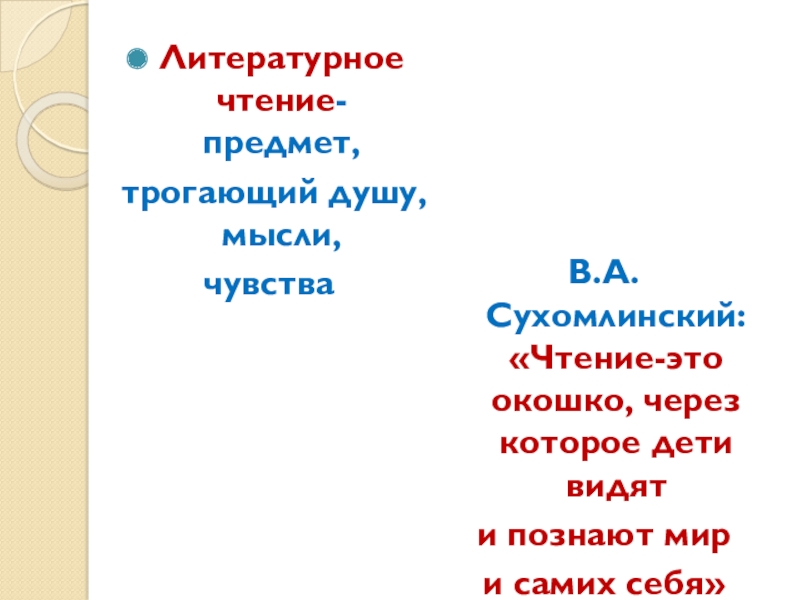 В.А. Сухомлинский: «Чтение-это окошко, через