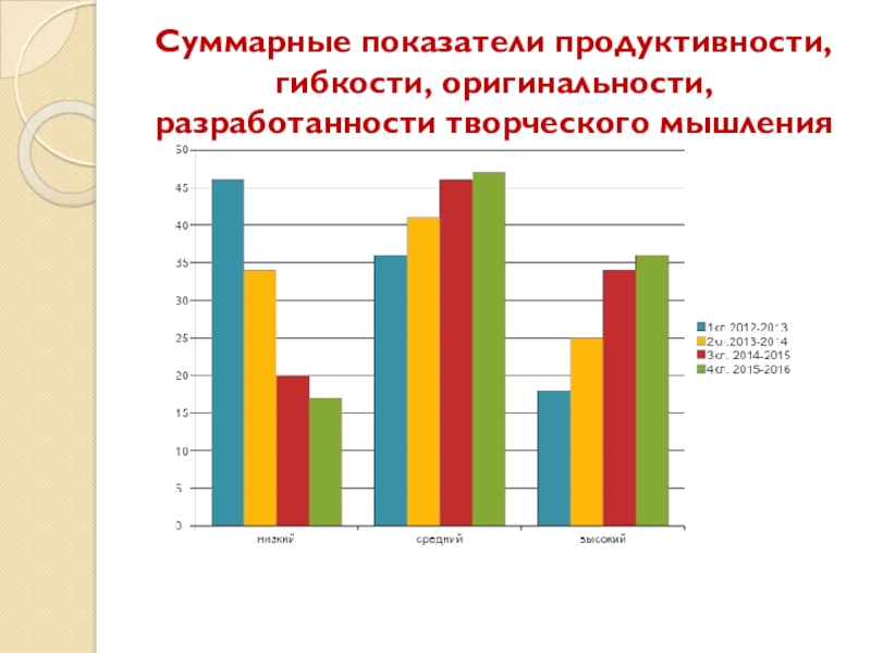 Слайд 21Суммарные показатели продуктивности, гибкости, оригинальности,