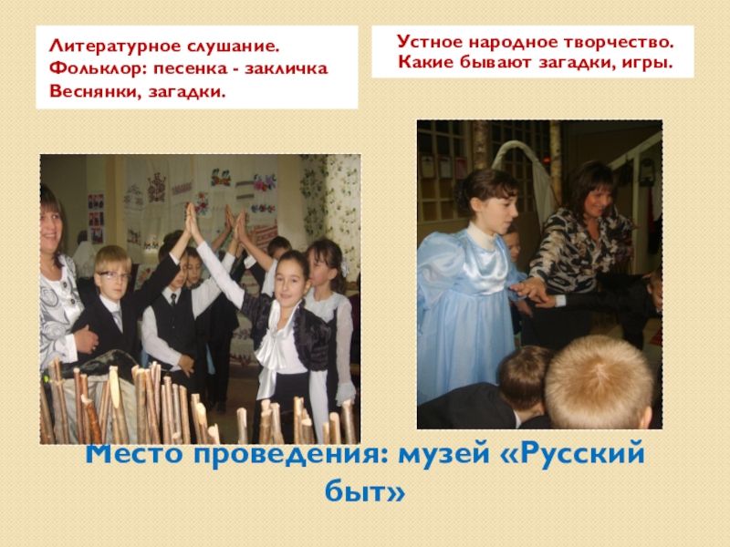 Литературное слушание. Фольклор: песенка - закличка Веснянки,