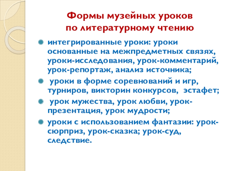 уроки с использованием фантазии: урок-сюрприз, урок-сказка; урок-суд, следствие.