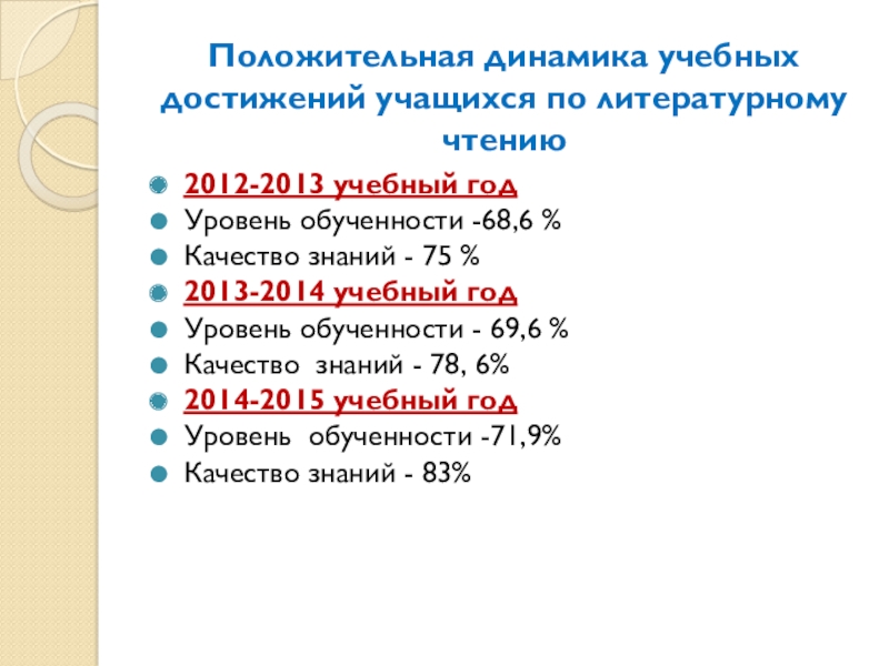Положительная динамика учебных достижений учащихся по литературному чтению