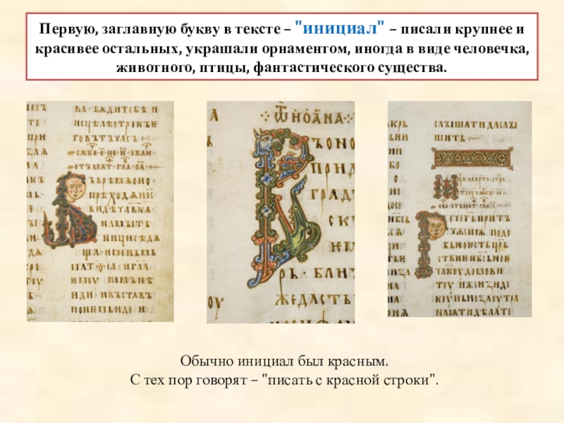 Выполненные от руки иллюстрации (рисунки) называются миниатюрами — от латинского слова «миния», которым древние римляне обозначали красную краску. Делали миниатюры особые мастера — художники-миниатюристы.