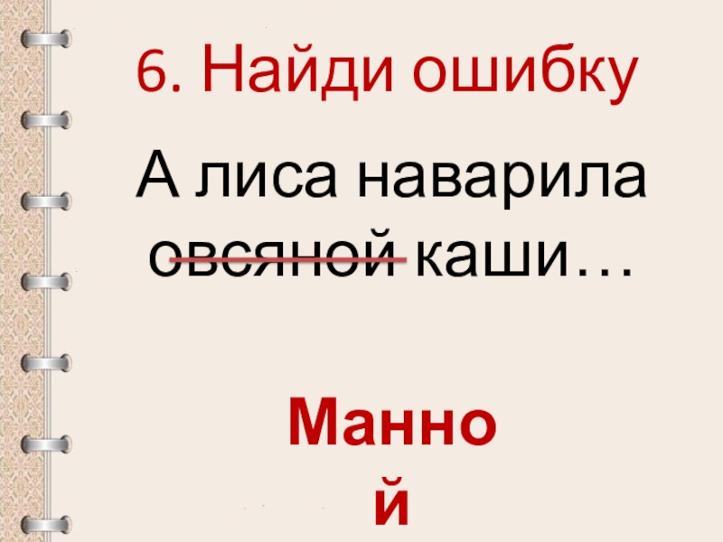 6. Найди ошибкуА лиса наварила овсяной каши…Манной