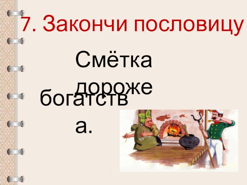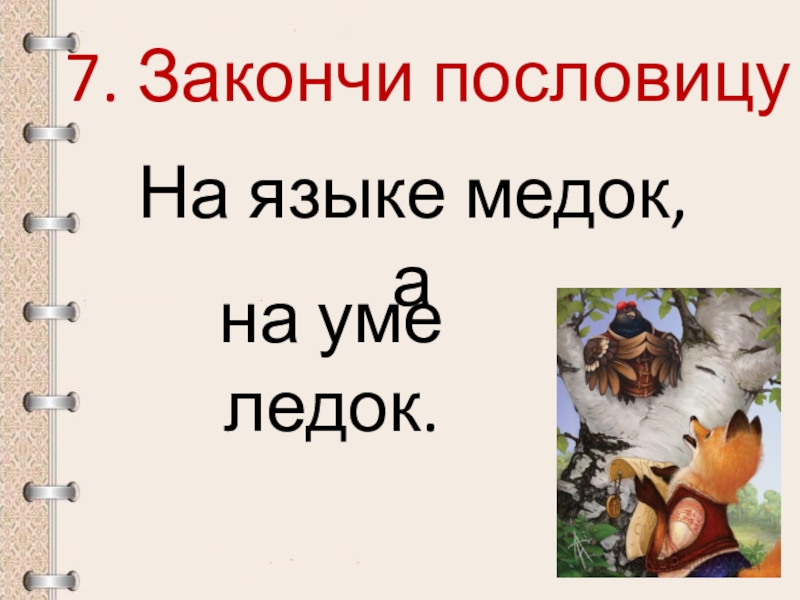 7. Закончи пословицуНа языке медок, ана уме ледок.