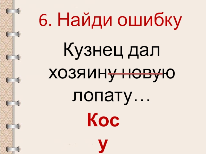 6. Найди ошибкуКузнец дал хозяину новую лопату…Косу