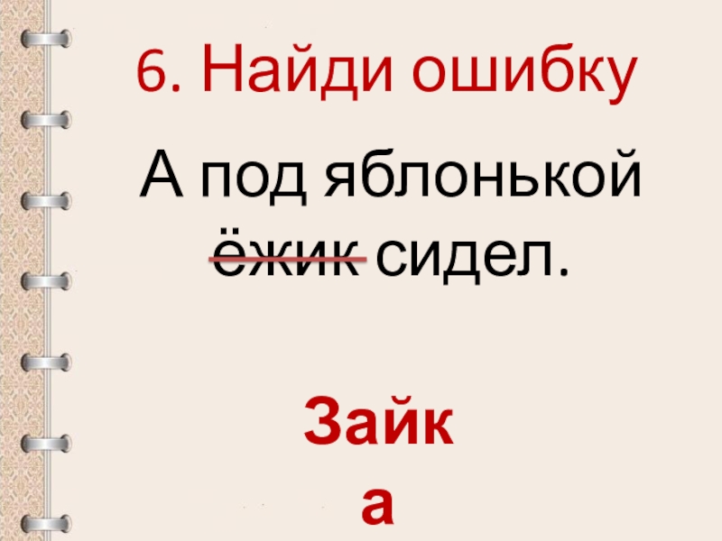 6. Найди ошибкуА под яблонькой ёжик сидел.Зайка