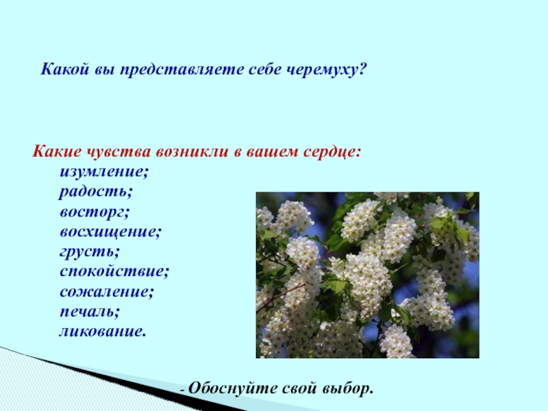 -Какие эпитеты вы бы придумали к слову черемуха?