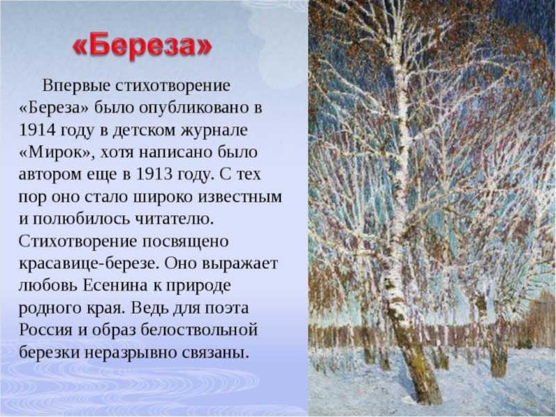 Презентация, доклад по литературному чтению Сергей Есенин. Береза