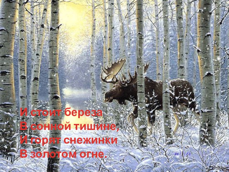 И стоит березаВ сонной тишине,И горят снежинкиВ золотом огне.