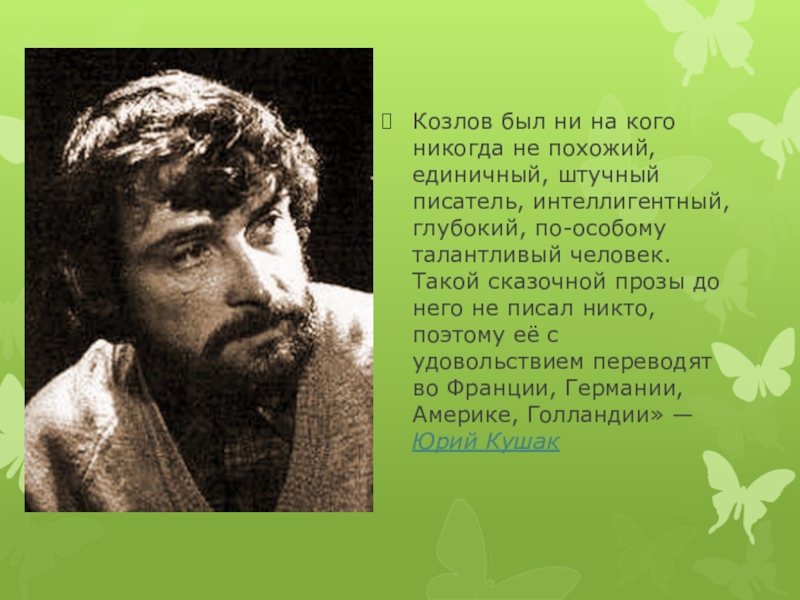Слайд 6Козлов был ни на кого никогда не похожий, единичный, штучный писатель,
