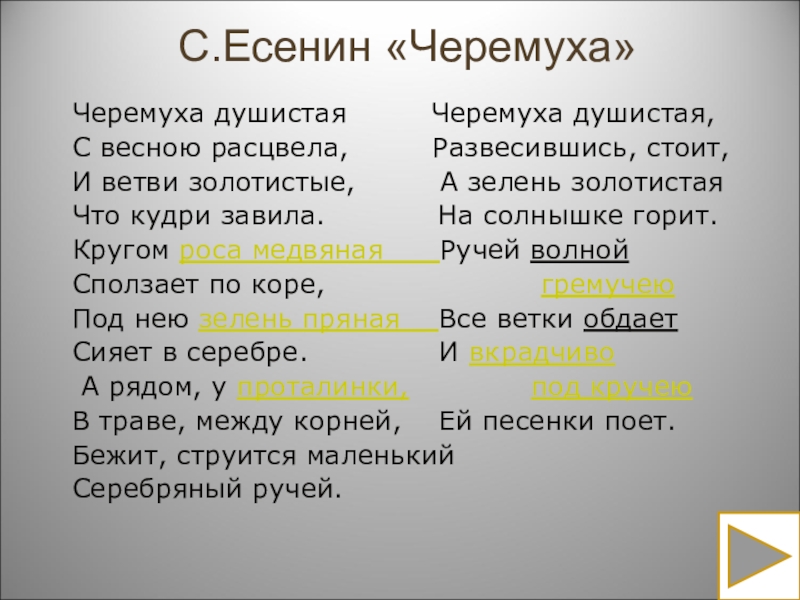 Слайд 5С.Есенин «Черемуха»