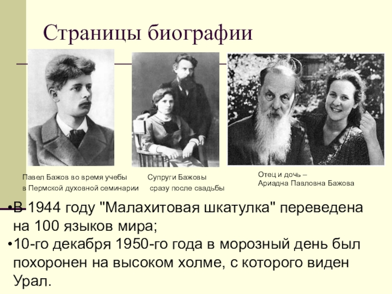 В 1944 году "Малахитовая шкатулка" переведена на 100 языков мира;
