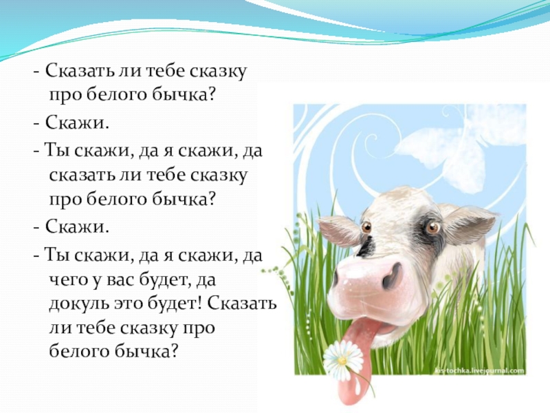 Слайд 8- Сказать ли тебе сказку про белого бычка?