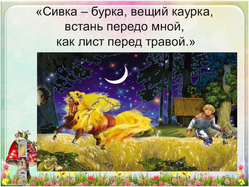 Слайд 15«Сивка – бурка, вещий каурка, встань передо мной, как лист перед