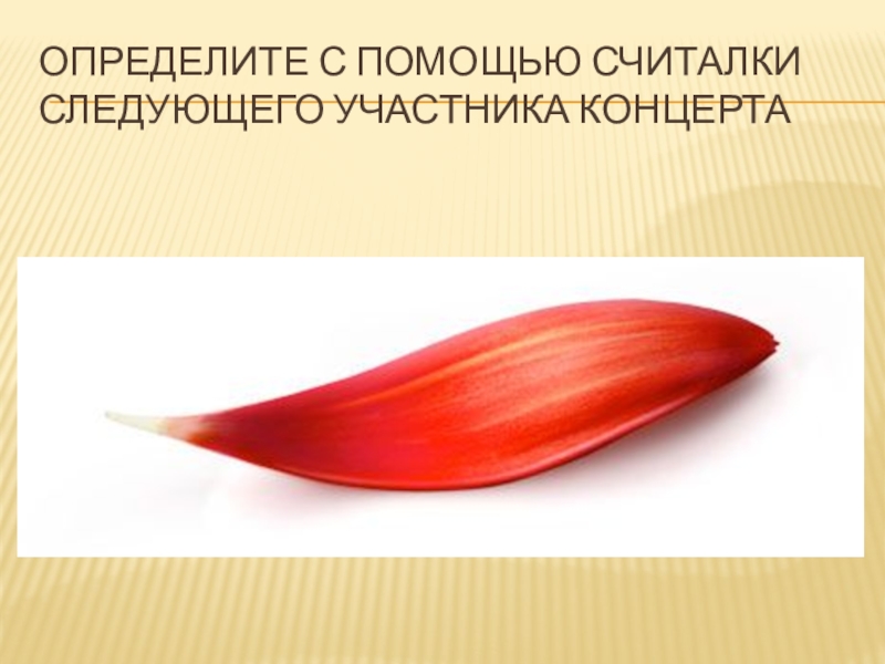 Слайд 7Определите с помощью считалки следующего участника концерта