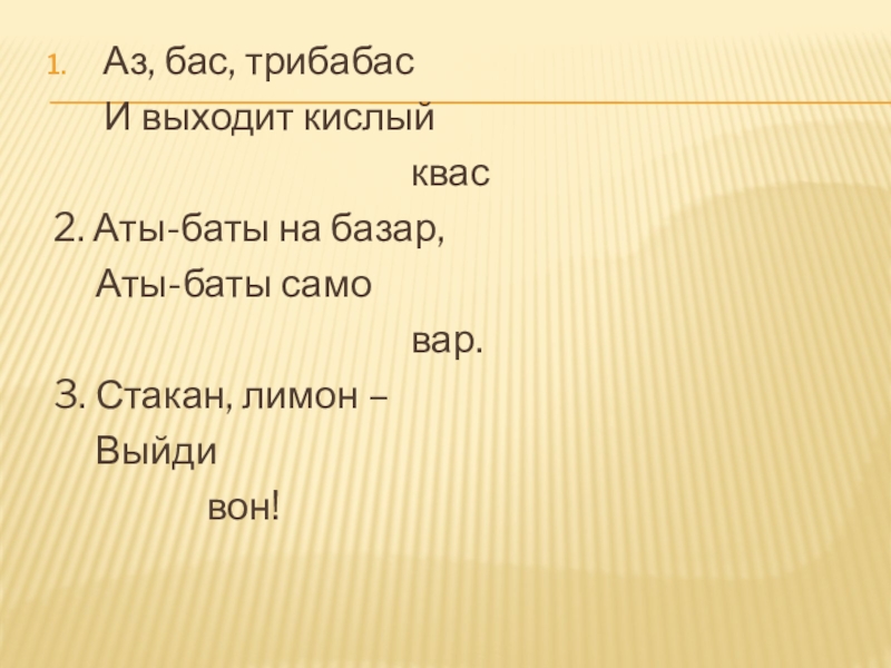Аз, бас, трибабас   И выходит кислый