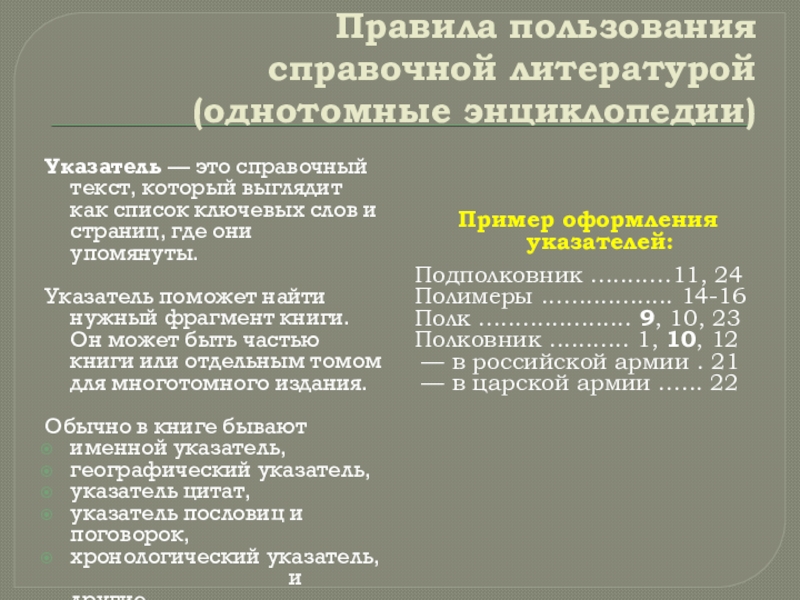 Пример оформления указателей: