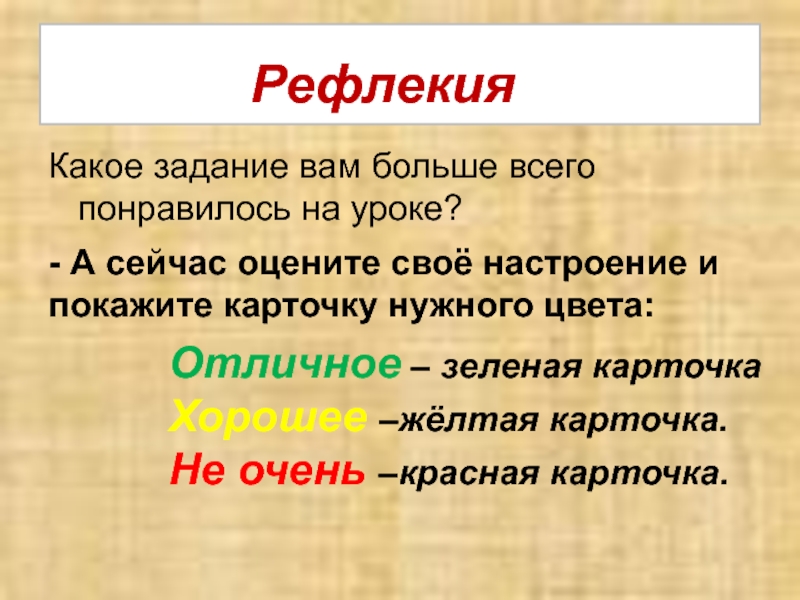 Хорошее –жёлтая карточка.