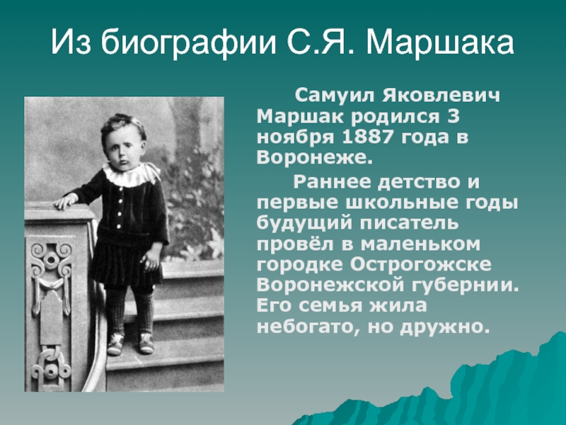 Слайд 3Из биографии С.Я. Маршака