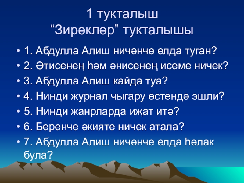 Слайд 1Абдулла Алиш әкиятләренә сәяхәт