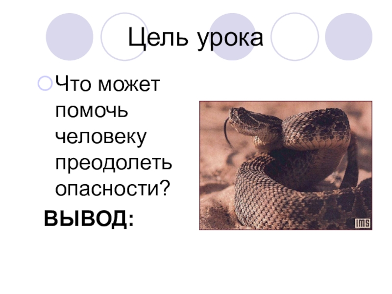 Цель урокаЧто может помочь человеку преодолеть опасности?ВЫВОД: